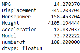 - US cars are on average heavier, and their engines are larger (displacement), more powerful (horsepower) and on average contain two additional cylinders relative to the cars from Europe and Japan. This provides an initial explanation for the relatively poor fuel consumption of the US cars — the cars are simply larger and more powerful.