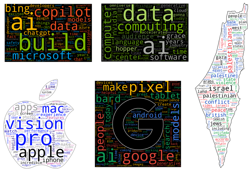 They are typically used to visualise themes around political speeches, keynote addresses, company results, and IPO filings.